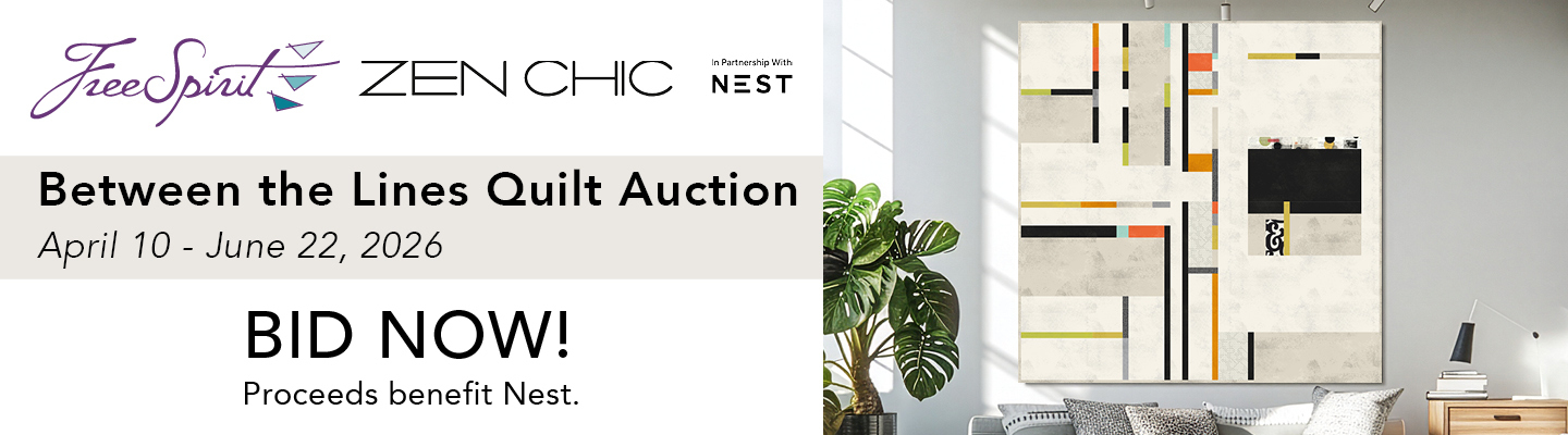For two decades, Brigitte Heitland, the creative force behind Zen Chic, has helped define modern quilting with her signature balance of structure, movement, and understated elegance. Now, as she begins an exciting new chapter with FreeSpirit Fabrics, she celebrates this milestone with something truly special—a stunning, one-of-a-kind quilt titled Between the Lines.
